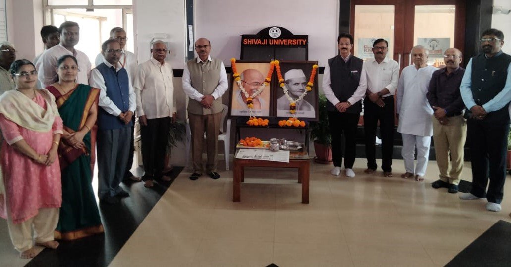 कोल्हापूर,-शिवाजी विद्यापीठात महात्मा गांधी आणि लालबहादूर शास्त्री यांच्या जयंतीनिमित्त अभिवादन करण्यात आले. विद्यापीठाचे कुलगुरू डॉ.दिगंबर शिर्के आणि प्र-कुलगुरू डॉ.प्रमोद पाटील यांच्या हस्ते मुख्य प्रशासकीय इमारतीमध्ये महात्मा गांधी आणि लालबहादूर शास्त्री यांच्या प्रतिमेस पुष्पहार अर्पण करून करण्यात आले.यावेळी शहादा नंदुरबार येथील गांधीवादी साहित्यिक डॉ.विश्वास पाटील, ज्येष्ठ विचारवंत डॉ.अशोक चौसाळकर, डॉ.सुनिलकुमार लवटे, कुलसचिव डॉ.विलास शिंदे, अधिष्ठाता डॉ.सरिता ठकार, डॉ.श्रीकृष्ण महाजन, वित्त व लेखाधिकारी डॉ.सुहासिनी पाटील, परीक्षा व मूल्यमापन मंडळाचे संचालक डॉ.अजितसिंह जाधव, गांधी अध्यासन केंद्राचे समन्वयक डॉ.प्रकाश पवार, राष्ट्रीय सेवा योजना संचालक डॉ.तानाजी चौगुले, क्रीडा अधिविभागप्रमुख डॉ.शरद बनसोडे, तंत्रज्ञान अधिविभागप्रमुख डॉ.शिवलिंगप्पा सपली, ग्रंथपाल डॉ.धनंजय सुतार, डॉ.नंदकुमार मोरे, डॉ.चंद्रकांत लंगरे, दौलत नांद्रे यांचेसह शिक्षक, संशोधक विद्यार्थी, विद्यार्थीनी मोठया संख्येने उपस्थित होते.