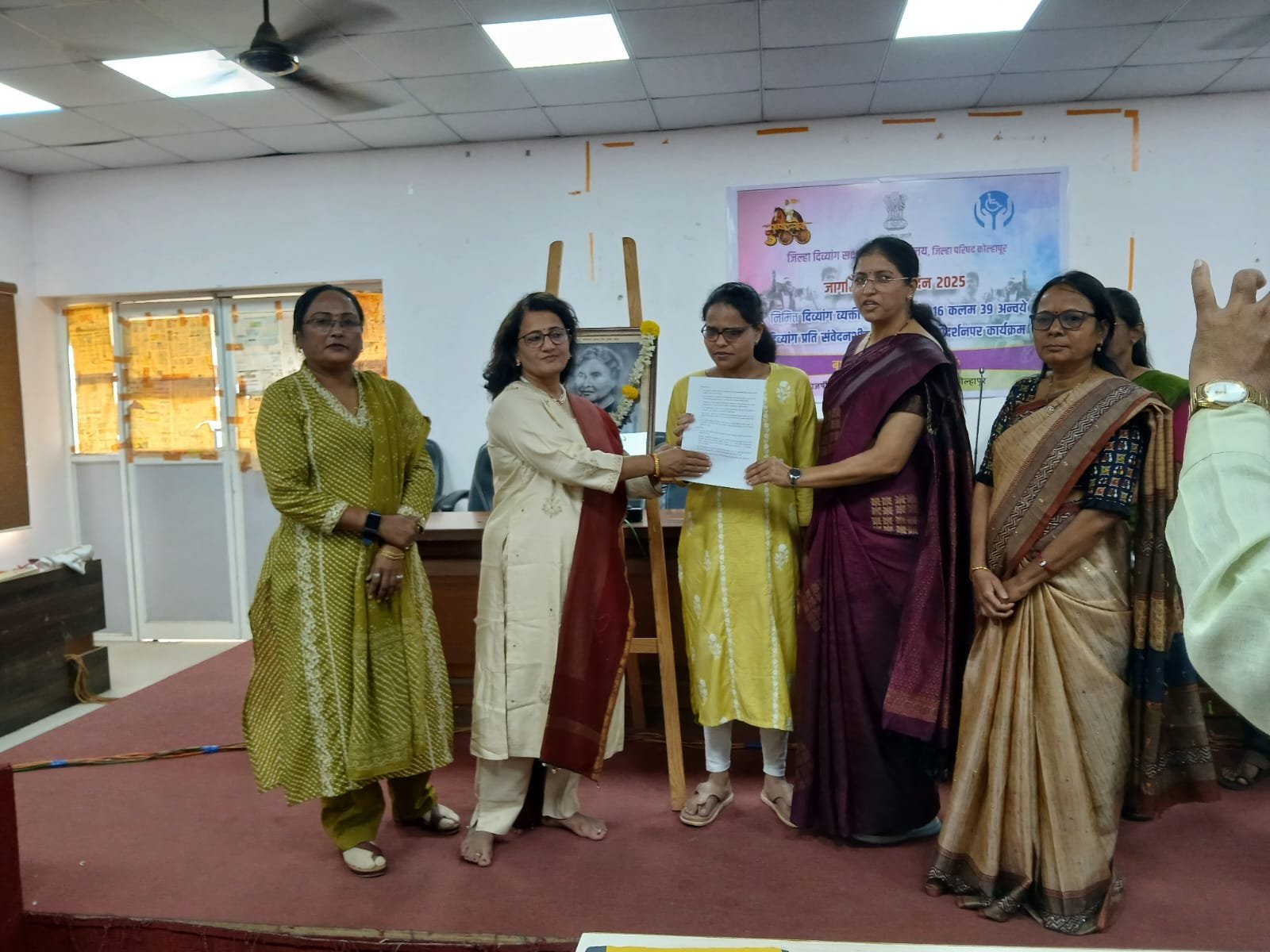 कोल्हापूर – जागतिक दिव्यांग दिनानिमित्त जिल्हा दिव्यांग सक्षमीकरण कार्यालय, जिल्हा परिषद येथे विविध कार्यक्रमांचे आयोजन करण्यात आले. जिल्हाधिकारी अमोल येडगे व मुख्य कार्यकारी अधिकारी कार्तिकेयन एस. यांच्या मार्गदर्शनाखाली हा कार्यक्रम संपन्न झाला. यावेळी दृष्टीहीन दिव्यांग असलेल्या दिपाली पाटील यांना नियुक्ती आदेश प्रदान करण्यात आला.