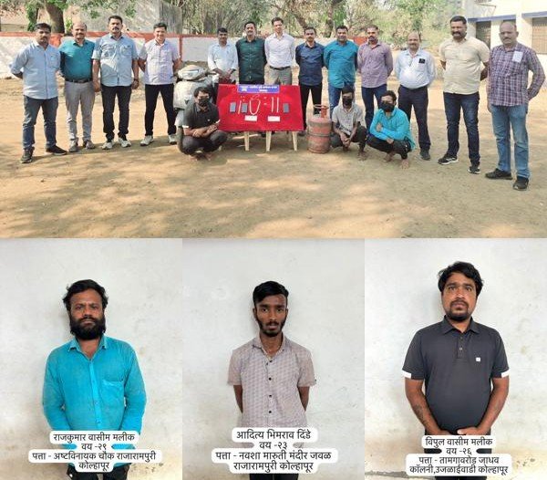 पोलिस अधीक्षक महेंद्र पंडित यांच्या मार्गदर्शनाखाली आणि पोलीस निरीक्षक रवींद्र कळमकर यांच्या नेतृत्वाखाली ही कारवाई करण्यात आली. स्थानिक गुन्हे अन्वेषण शाखेच्या पथकाने गुप्त माहितीच्या आधारे आरोपींना अटक केली.राजू गणपत माळी (वय २२ वर्षे), रा. राजगोपाल चौक, कोल्हापूर, विद्युत वसीम मलिक (वय २६ वर्ष, रा. जाधववाडी, कोल्हापूर) भीमराव दिनदे (वय २२ वर्षे), रा. पन्हाळा, कोल्हापूर अशी त्याची नावे आहेत.