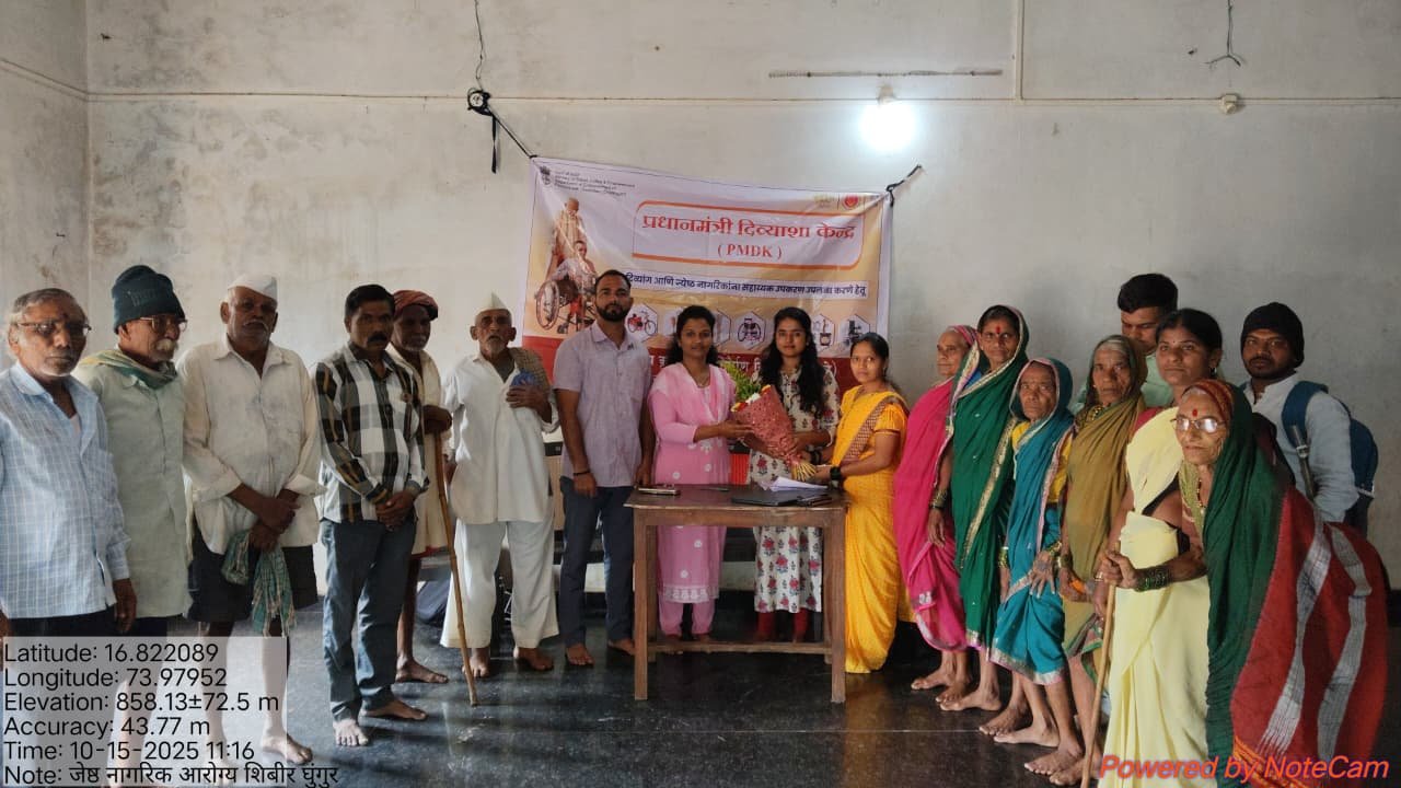 या शिबिरात ६० वर्षांवरील १६५ जेष्ठ नागरिकांची तपासणी करण्यात आली. योजनेअंतर्गत मानेसाठी, पाठीसाठी, कमरेसाठी आणि गुडघ्यासाठी सहाय्यक बेल्ट, तसेच वॉकर, काठी, कमोड खुर्ची आणि दिव्यांगांना व्हीलचेअर यांचे वाटप करण्यात येणार आहे.
