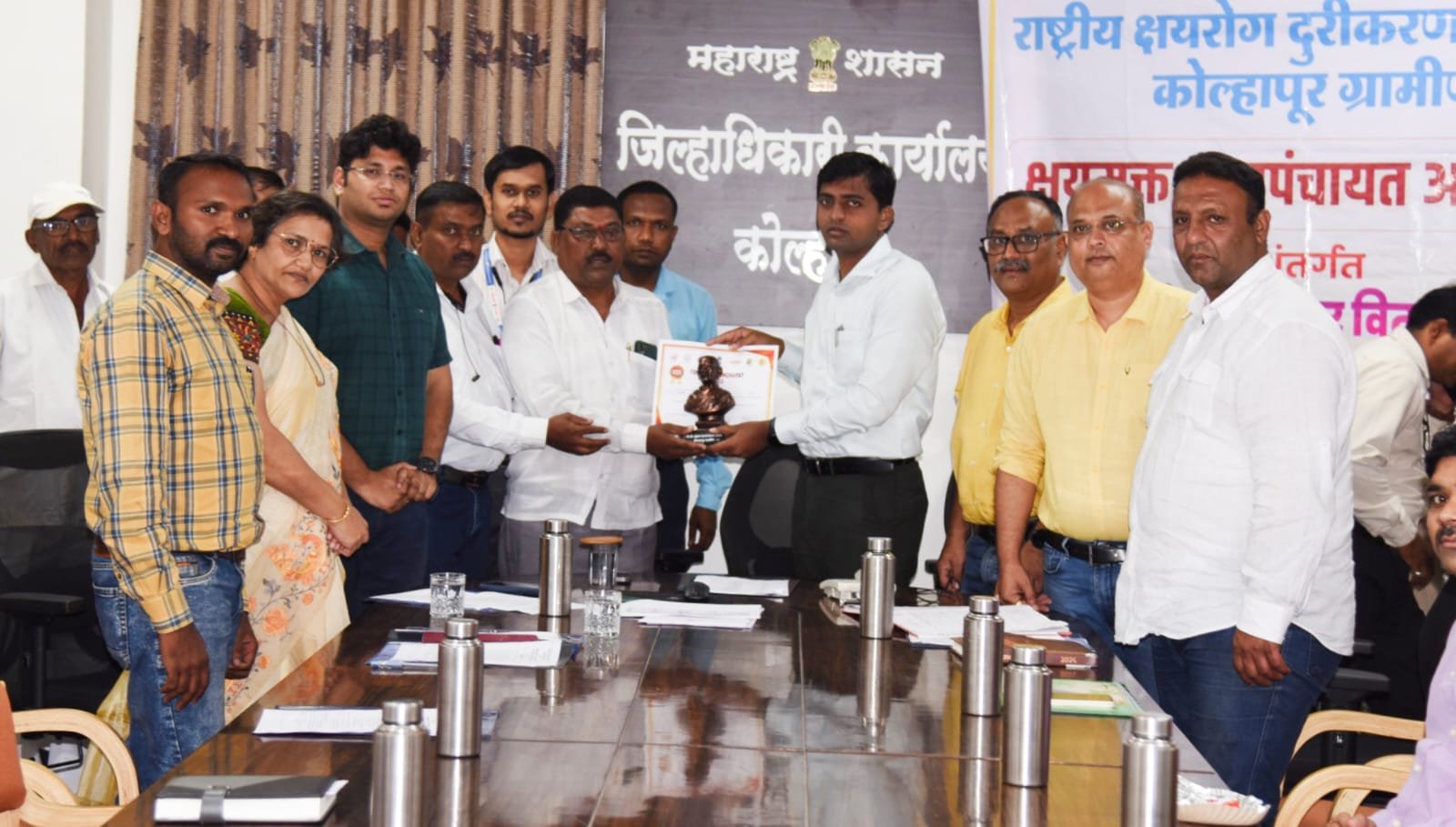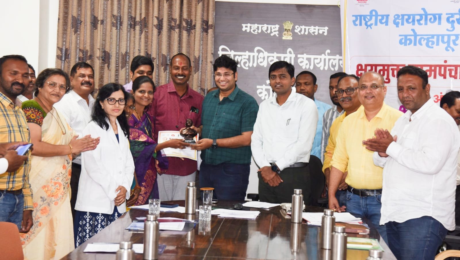 मुख्य कार्यकारी अधिकारी कार्तीकेयन एस. यांनी यावर्षी २०२४ मध्ये सर्व ग्रामपंचायतीनी क्षयमुक्त ग्रामपंचायत अभियानात भाग घ्यावा असे आवाहन केले. जिल्हा शल्य चिकीत्सक डॉ. सुप्रिया देशमुख यांनी प्रास्ताविकामध्ये “क्षयमुक्त ग्रामपंचायती साठी पात्रता निकष सांगितले. जिल्हा आरोग्य अधिकारी डॉ.अनिरुध्द पिंपळे यांनी आरोग्य विभागाद्वारे क्षयमुक्त प्राथमिक आरोग्य केंद्र मोहीम राबवून जास्तीत जास्त गावे क्षयमुक्त करण्यावर भर दिला जाईल अशी ग्वाही दिली. यावेळी करवीर तालुक्यातील पासार्डे, ऊपवडे, केकतवाडी, शेळकेवाडी या ग्रामपंचायातींचा “क्षयमुक्त ग्रामपंचायत” म्हणून मान्यवरांच्या हस्ते महात्मा गांधी यांचा ब्राँझ पुतळा व सन्मानपत्र प्रदान करून गौरव करण्यात आला.
