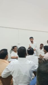 कामगाराशी चर्चा करताना जितेंद्र चव्हाण आणि मान्यवर