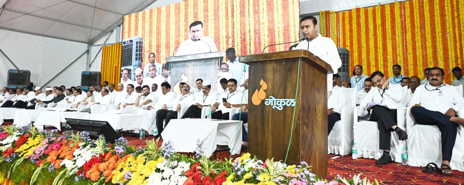 कोल्हापूर : कोल्हापूर जिल्हा सहकारी दूध उत्पादक संघ मर्या. (गोकुळ) ची ६३ वी वार्षिक सर्वसाधारण सभा चेअरमन नविद मुश्रीफ यांच्या अध्यक्षतेखाली उत्साहपूर्ण व खेळीमेळीत संपन्न झाली. सभेत पोटनियम दुरुस्ती, मुंबई-पुणे येथील जागा खरेदी, नवीन प्रकल्प अशा विषयांना सभासदांनी मंजुरी दिली.