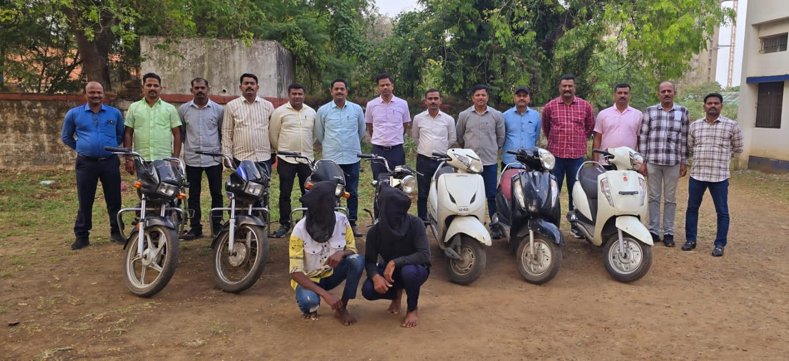 काेल्हापूर- येथील एलसीबीची पुन्हा एकदा गुन्हेगारांचा करेक्ट कार्यक्रम करताना अट्टल गुन्हेगारांना पकडण्यात यश मिळविले आहे. दाेन अट्टल माेटरसायकल चाेरट्यांना अटक केली आहे. त्यांच्याकडून ४ लाख रूपये किंमतीच्या एकूण ७ मोटर सायकली जप्त करून ६ गुन्हे उघडकीस आणण्यात स्थानिक गुन्हे अन्वेषण शाखा कोल्हापूर यांना यश आले आहे. पाेलीस अधीक्षक महेंद्र पंडीत यांच्या नेतृत्वाखाली पाेलीस निरीक्षक रविंद कळमकर यांच्या पथकाने ही कामगिरी फत्ते केली आहे.