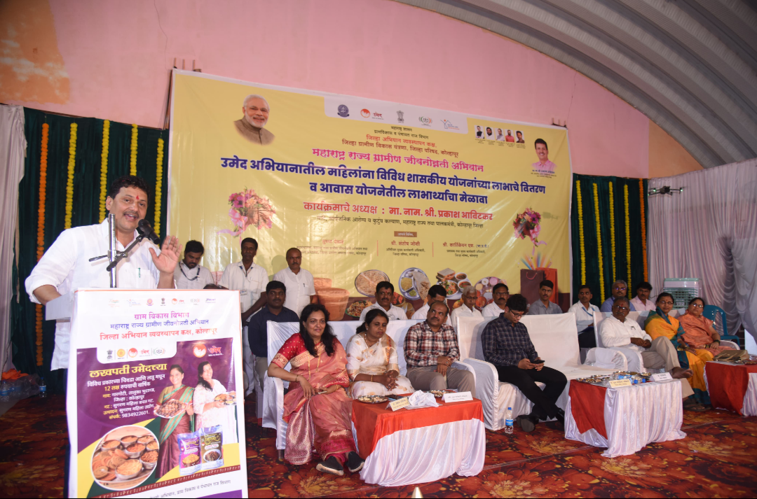 प्रास्ताविक करताना प्रकल्प संचालक सुषमा देसाई यांनी सांगितले की, जिल्ह्यात २५,५९९ स्वयंसहायता समूह गट आहेत. १,२७७ ग्राम संघ, ६७ प्रभाग संघ असून १,४४८ समुदाय संसाधन व्यक्ती आणि २५,४८८ वैयक्तिक व सामूहिक व्यवसाय सक्रिय आहेत. बँक पतपुरवठा गट १,१४३ असून, ४२३ कोटी रुपयांचा बँक पतपुरवठा करण्यात आला आहे. कार्यक्रमाचे सूत्रसंचालन आनंदा शिंदे यांनी केले तर आभार गटविकास अधिकारी सर्जेराव पाटील यांनी मानले.