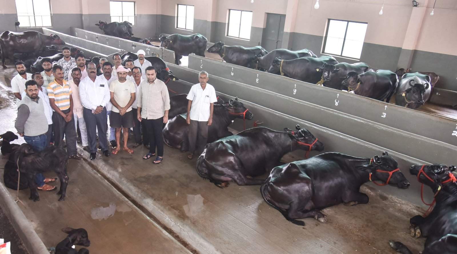 गोकुळ दूध संघाचे अध्यक्ष नवीद मुश्रीफ यांच्या शेतातील गोठ्यामध्ये या आधीच्या मुरा जातीच्या दहा म्हशी व दोन रेडे आहेत. आज त्यांनी हरियाणा राज्यातील जिंद व रोहतक जिल्ह्यांमधून नवीन २० म्हशी आणल्या. तसेच; लहान २२ रेडकांमध्ये १३ रेडे व नऊ रेड्या आहेत. एकूण ५४ संख्या असलेल्या या सर्व म्हशी, रेडे व रेडके हरियाणा मुरा जातीची आहेत.