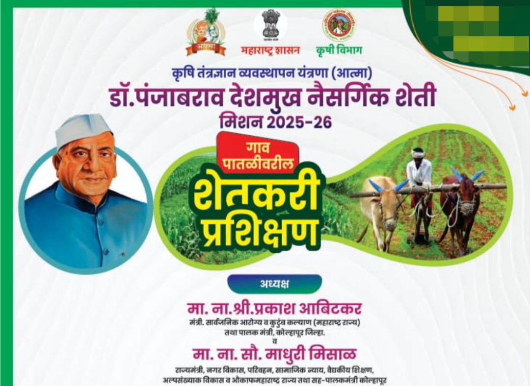 गुडाळ – राधानगरी तालुक्यातील गुडाळ येथे नैसर्गिक शेतीला प्रोत्साहन देण्यासाठी महाराष्ट्र शासनाच्या कृषी विभागांतर्गत “डॉ. पंजाबराव देशमुख नैसर्गिक शेती मिशन 2025-26” अंतर्गत गाव पातळीवरील शेतकरी प्रशिक्षण कार्यक्रमाचे आयोजन करण्यात आले आहे. हा कार्यक्रम शनिवार, दिनांक २४ मे २०२५ रोजी सकाळी ६ वाजता गुडाळ येथील गुडाळेश्वर मल्टीपर्पज हॉलमध्ये संपन्न होणार आहे.