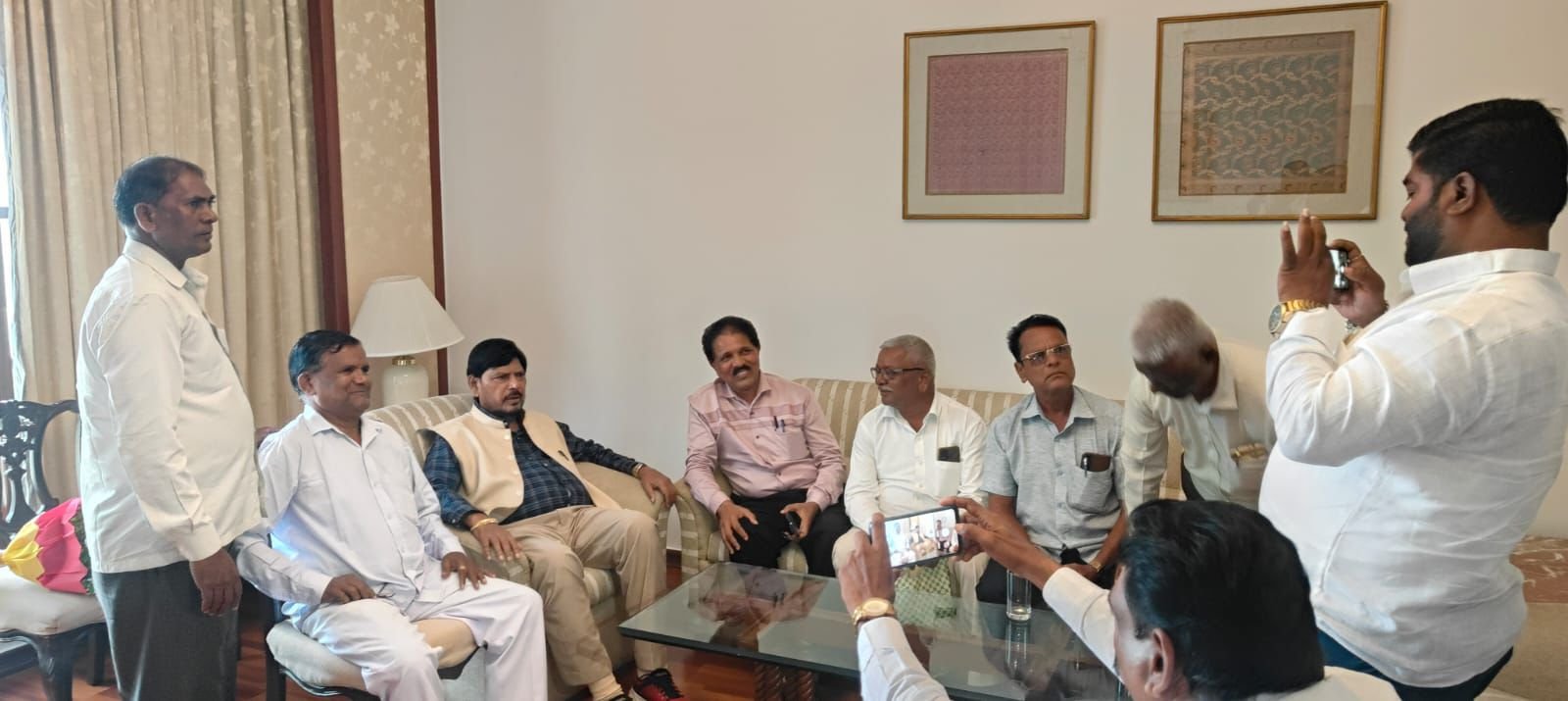 मुंबईतील सह्याद्री अतिथीगृहात पक्षाचे राज्य संघटन सचिव प्रा. शहाजी कांबळे यांच्या नेतृत्वाखाली कोल्हापूर जिल्ह्यातील शिष्टमंडळाने ना. आठवले साहेबांची भेट घेतली. या भेटीत कोल्हापूरमध्ये नवीन नेतृत्वाला संधी द्यावी, अशी मागणी करण्यात आली. या मागणीला सकारात्मक प्रतिसाद देत आठवले साहेबांनी “लोकशाहीला धरून तुमची मागणी रास्त आहे, लवकरच नवीन नेतृत्वाला संधी मिळेल,” असे आश्वासन दिले.