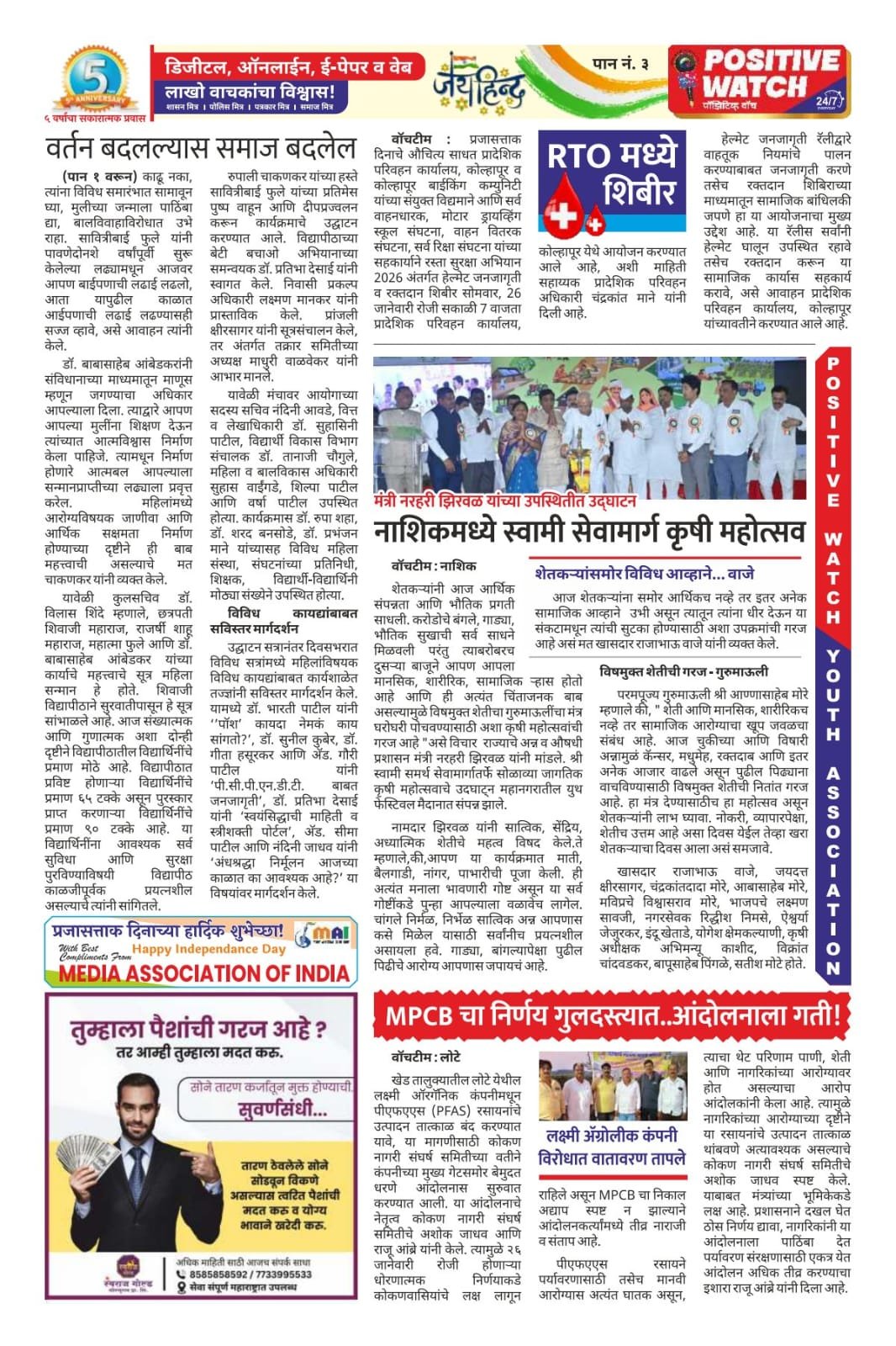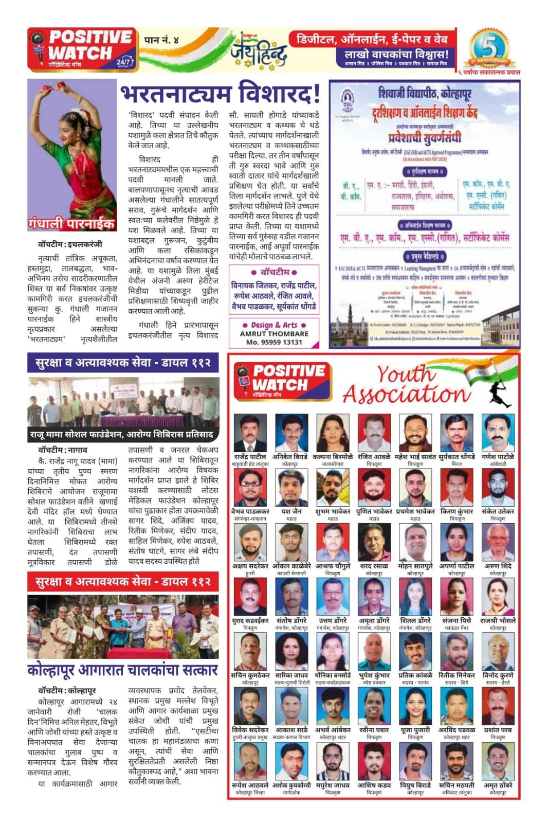 पाँझिटीव्ह वाँच युथ असाेशिएन: पाेलीस मित्र, शासन मित्र, पत्रकार मित्र व समाज मित्र चे सभासद व्हा. बारमाही सवलत..आमच्या लाेकप्रिय पाँझिटीव्ह वाँच न्यूज पाेर्टलवर अल्पदरात छाेटी व माेठी जाहिरात द्या.