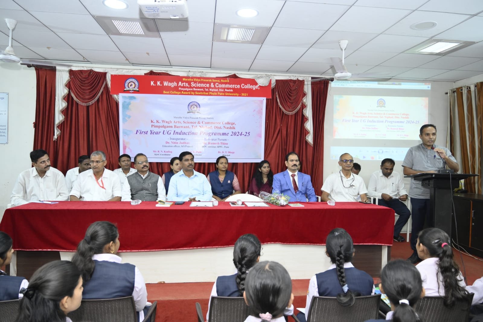 मराठा विद्या प्रसारक समाज संस्थेचे पिंपळगाव बसवंत येथील कर्मवीर काकासाहेब वाघ महाविद्यालयात सात दिवसीय दिक्षारंभ समारंभाचे उद्घाटक म्हणून ते बोलत होते. यावेळी व्यासपीठावर सावित्रीबाई फुले पुणे विद्यापीठ पदार्थ विज्ञान शाखा अभ्यास मंडळ सदस्य प्रा डॉ रमेश भिसे, महाविद्यालयाचे प्राचार्य डॉ ज्ञानोबा प्रा डॉ नरेंद्र पाटील, प्रा भगवान कडलग, उपप्राचार्य दिलीप माळोदे, प्रा. हेमंत पाटील, प्रा किरणकुमार जोहरे आदी उपस्थित होते.