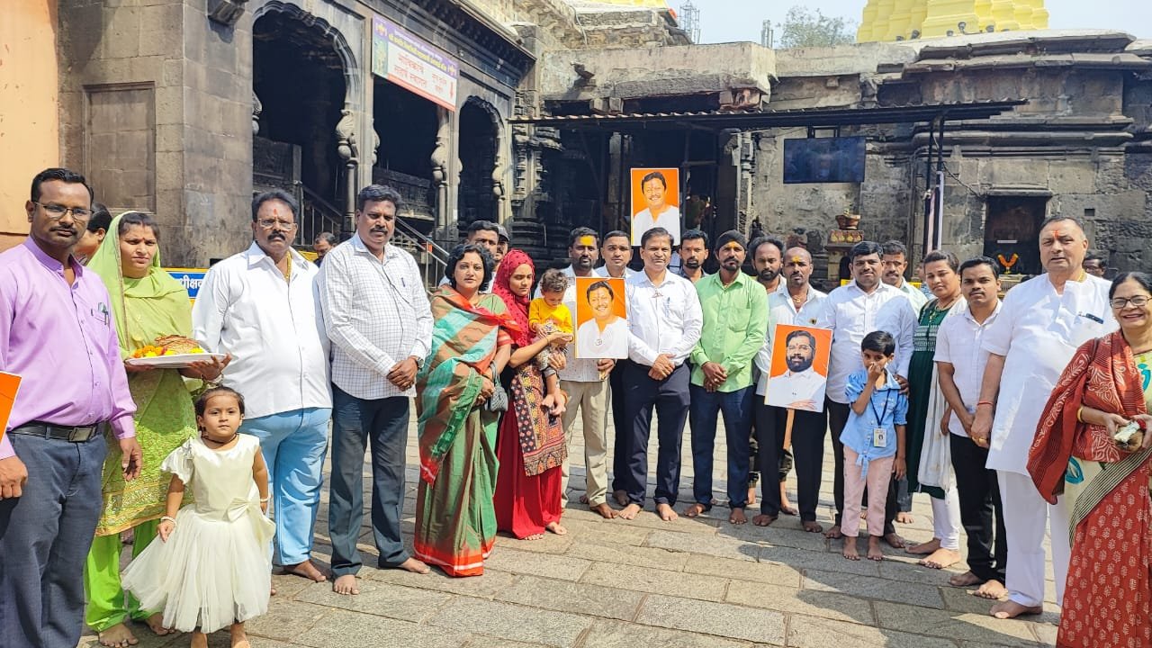कोल्हापूर : गोरगरीब जनता आणि रुग्णांचे कैवारी एकनाथ शिंदे हेच पुन्हा मुख्यमंत्री व्हावेत तसेच आमदार राजेश क्षीरसागर यांना मंत्री आणि पालकमंत्री पद मिळावे, यासाठी शिवसेना वैद्यकीय मदत कक्ष आणि बरे झालेल्या रुग्णांकडून आई अंबाबाईला साकड घालण्यात आले. आरोग्य सेवेचा महायज्ञ अखंडपणे सुरू राहण्यासाठी एकनाथ शिंदे हेच पुन्हा मुख्यमंत्री होणे गरजेचे आहे, असे मत बरे झालेल्या रुग्णांनी व्यक्त केले. उपस्थित पदाधिकारी आणि रुग्णांनी आई अंबाबाईच्या मंदिराला प्रदक्षिणा घालून मुख्यमंत्री एकनाथ शिंदे हेच होऊ देत यासाठी प्रार्थना केली.