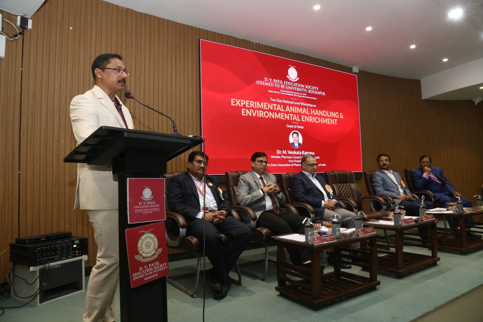 डी. वाय. पाटील अभिमत विद्यापिठाच्यावतीने डी. वाय. पाटील कॉलेज ऑफ फार्मसी येथे आयोजित ‘एक्स्पेरिमेंटल ॲनिमल हँडलिंग अँड एन्व्हायरन्मेंटल एनरिचमेंट’ या विषयावर दोन दिवसीय राष्ट्रीय प्रायोगिक कार्यशाळेच्या उद्घाटन समारंभात प्रमुख पाहुणे म्हणून ते बोलत होते. डी. वाय. पाटील अभिमत विद्यापीठाचे कुलगुरू डॉ. राकेश कुमार शर्मा, कुलसचिव डॉ. व्ही. व्ही. भोसले, आकुर्डी येथील डी. वाय. पाटील कॉलेज ऑफ फार्मसीचे प्राचार्य डॉ. नीरज व्यवहारे, डॉ. रविकांत पाटील आदी व्यासपीठावर उपस्थित होते.