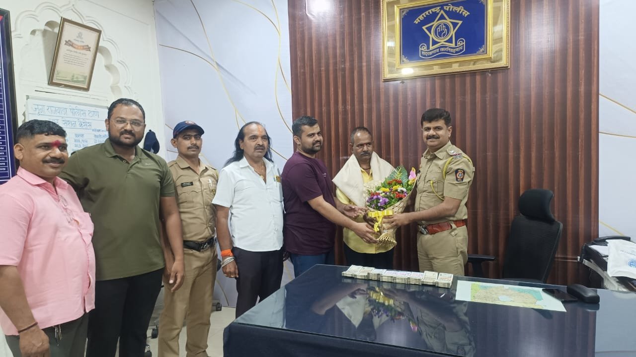 या प्रामाणिक कृतीबद्दल पोलीस निरीक्षक संजीव झाडे यांनी रिक्षाचालक रामचंद्र जाधव यांचा पुष्पगुच्छ देऊन सन्मान केला.