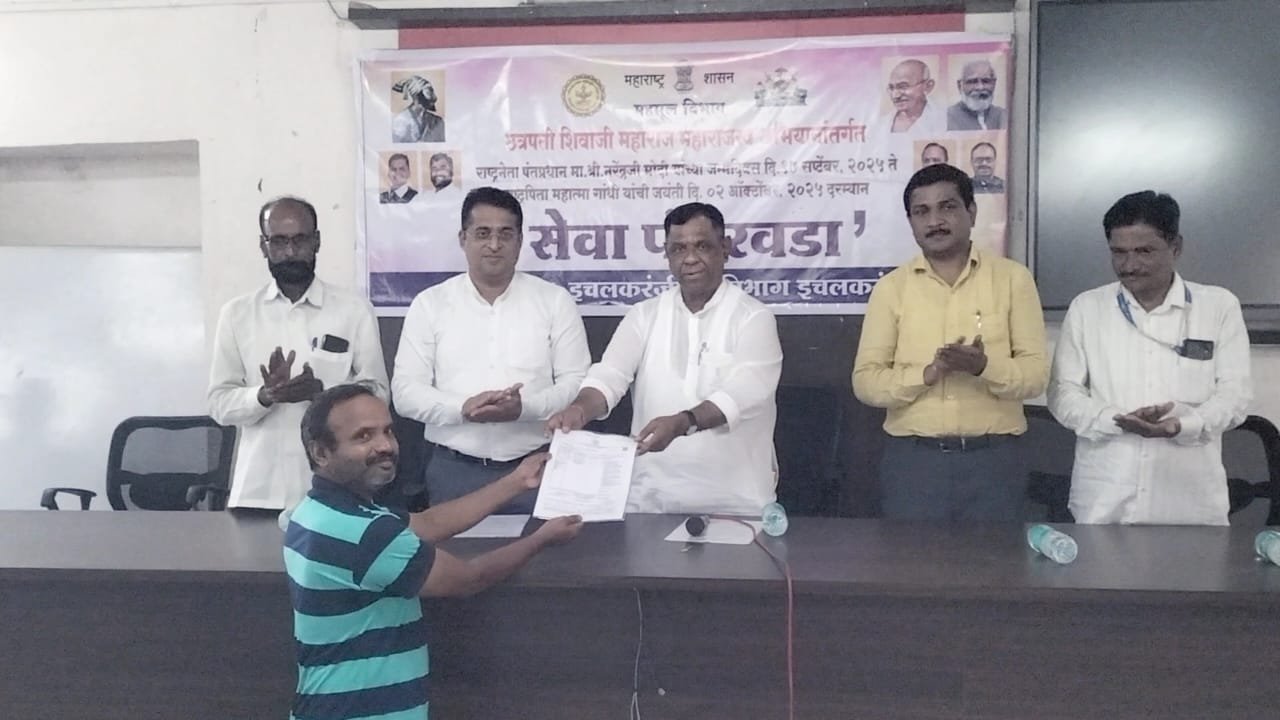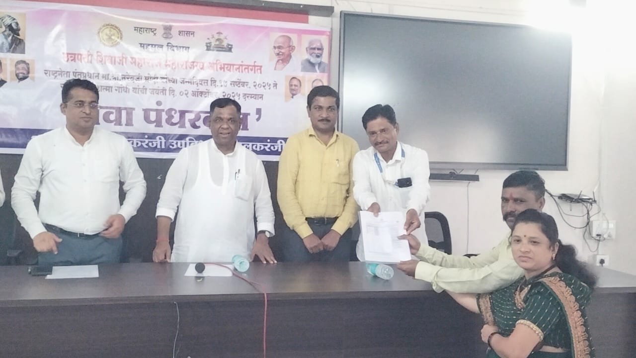 छत्रपती शिवाजी महाराज ‘महाराजस्व अभियान’ आणि सेवा पंधरवडा अंतर्गत हातकणंगले तहसील कार्यालयात पार पडलेला दाखला वितरण सोहळा हा प्रशासनाच्या ‘नागरिकमित्र’ कार्यपद्धतीचा एक उज्ज्वल उदाहरण ठरला. 17 सप्टेंबर — पंतप्रधान नरेंद्र मोदी यांचा जन्मदिवस — पासून सुरू झालेल्या सेवा पंधरवड्याचा उद्देश सरकारी सेवा तळागाळातील नागरिकांपर्यंत सुलभतेने पोहोचवणे हा होता. याच उपक्रमात 748 लाभार्थ्यांना विविध योजनांचे दाखले आणि प्रमाणपत्रे देण्यात आली. यावेळी संजय नंदीवाले यांनी तहसीलदार सुशीलकुमार बेल्हेकर व त्यांच्या टीमचे आभार मानले आणि प्रशासनाच्या कार्यक्षमतेचे कौतुक केले.