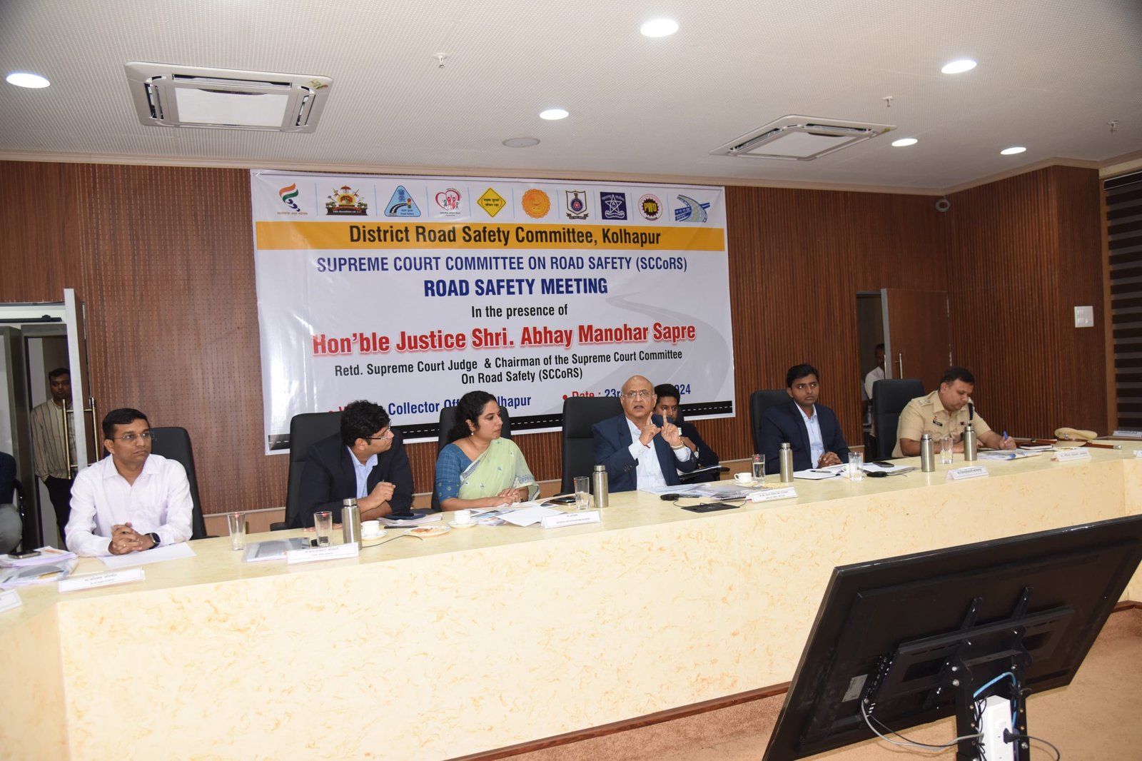 कोल्हापूर:- देशामध्ये दरवर्षी दीड ते दोन लाख मृत्यू रस्ते अपघातांमूळे होतात. दरदिवशी तो आकडा 450 ते 500 आहे. एकुण मृत्यूंमधील सर्वात जास्त मृत्यू हे रस्ते अपघातामधून होत असून, ते कमी करण्यासाठी रस्ते सुरक्षेला प्राधान्य दिलेच पाहिजे असे प्रतिपादन सर्वोच्च न्यायालयाचे माजी न्यायाधीश तथा अध्यक्ष, सर्वोच्च न्यायालय रस्ते सुरक्षा समिती, अभय सप्रे यांनी केले. ते जिल्हाधिकारी कार्यालयातील आयोजित कोल्हापूर, सांगली व सातारा जिल्ह्यातील अधिकाऱ्यांच्या रस्ते सुरक्षा बैठकीत बोलत होते.
